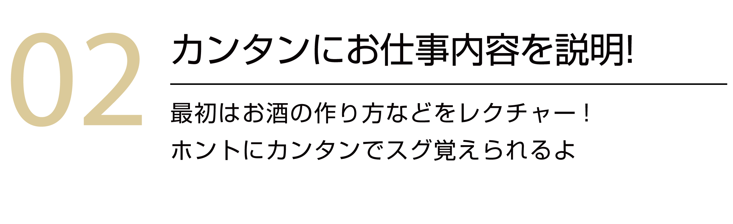 私たちのお店ではご安心いただけるように、新人キャストさんには担当のスタッフがつき、一から丁寧にテーブル講習などを教えています。お客様にとって心地よいサービスを提供するためのノウハウやマナーをしっかりと学び、自信を持って接客できるようにサポートいたします。どうぞお気軽にご応募ください。