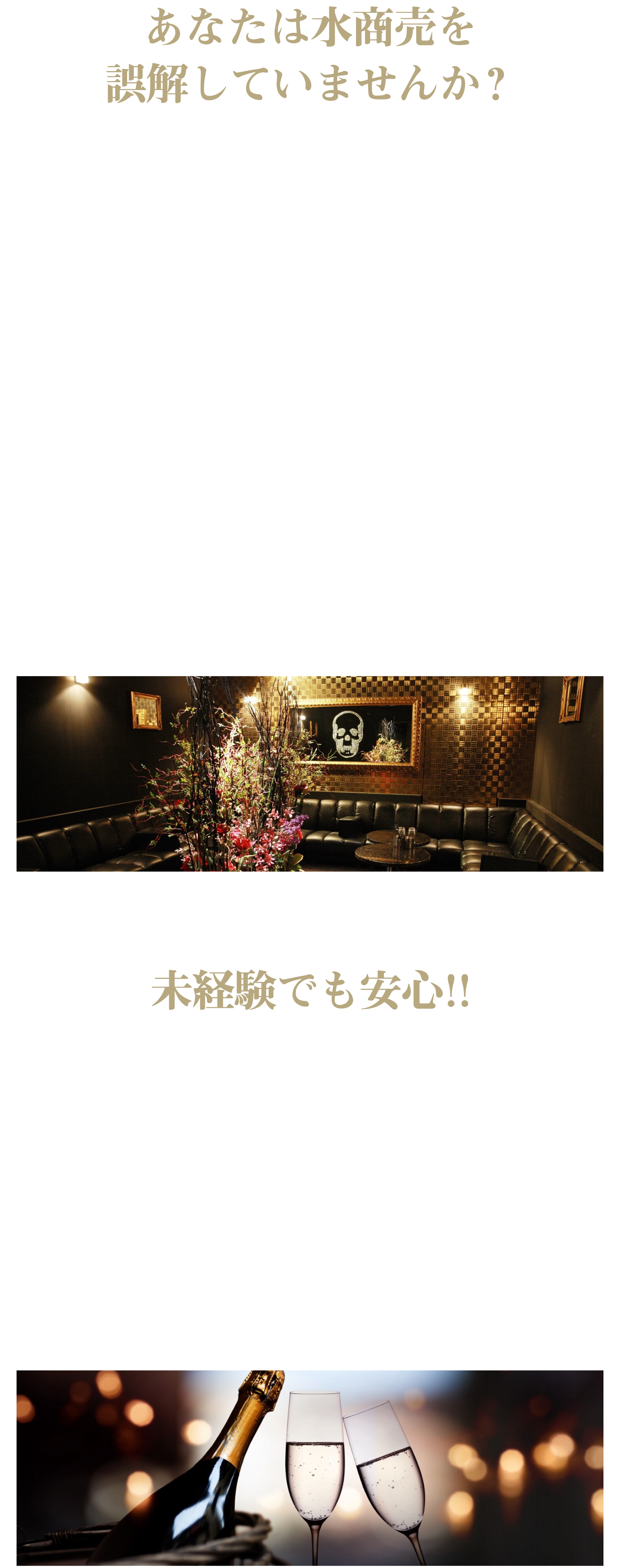 当店では未経験の方でも安心して働いていただけるように、体験入店を受け付けております。スタッフがしっかりと指導・サポートいたしますので、未経験の方でも安心してご応募ください。お気軽にお問い合わせいただければと思います。